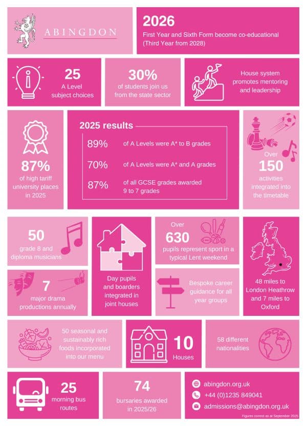 More information about life at Abingdon can be found by viewing our prospectuses.