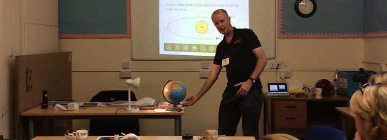 Following the success of the recent Ogden Trust Earth and Space training day for our local Abingdon Primary Science Partnership, the ASP was invited to deliver the same event for the Ogden Trust Partnership based at Fairford in Gloucestershire. Nine teachers from seven schools attended and were given a basic introduction to ideas about the solar system, galaxies and cosmology before spending the afternoon testing the activities in the free box of resources that partnership schools are given by the Ogden Trust. All the teachers were very enthusiastic, asking interesting questions and suggesting useful ideas for ways in which the resources would be used in their classrooms. The ASP's footprint is continuing to expand beyond the town and district of Abingdon, now reaching into Gloucestershire, Berkshire and Wiltshire through association with national organisations such as the Ogden Trust and the National STEM Learning Centre.
