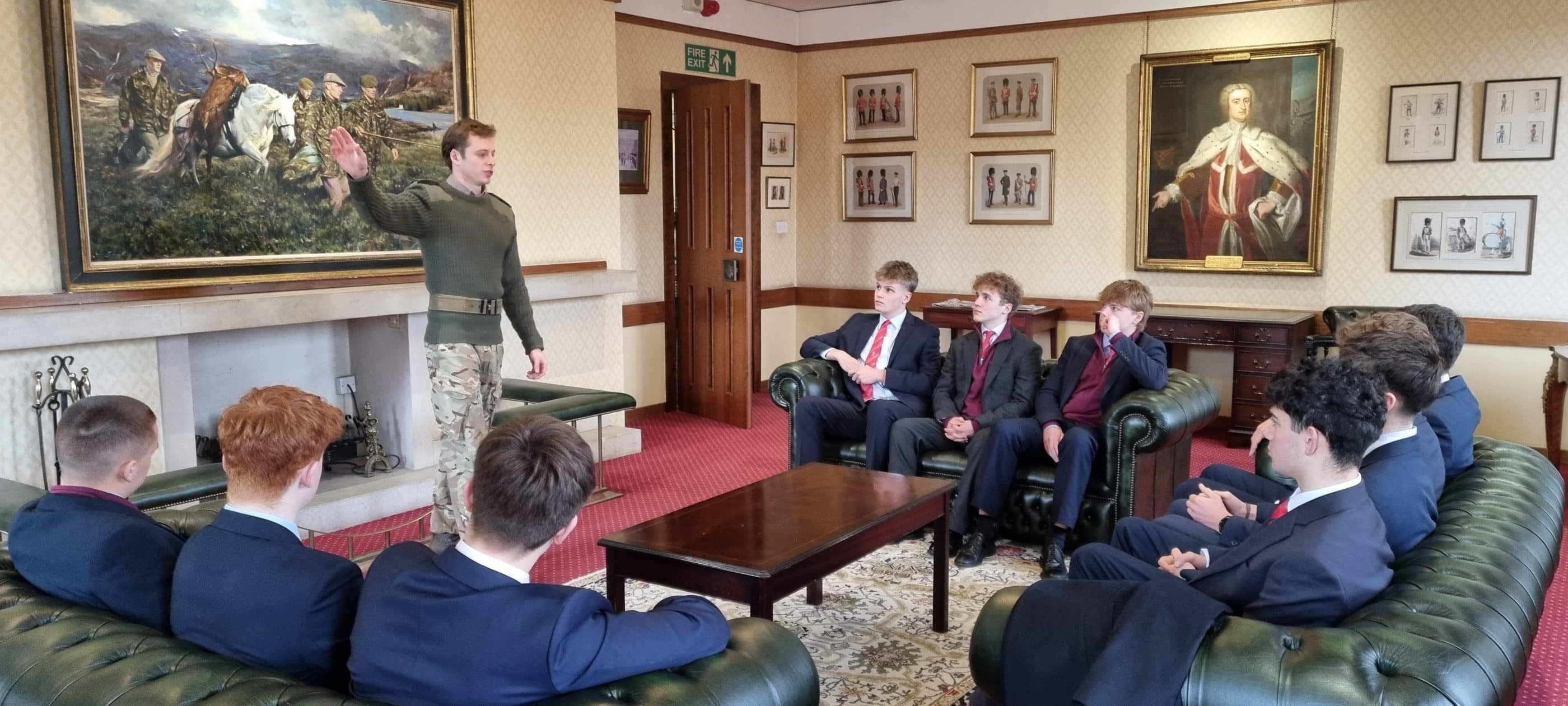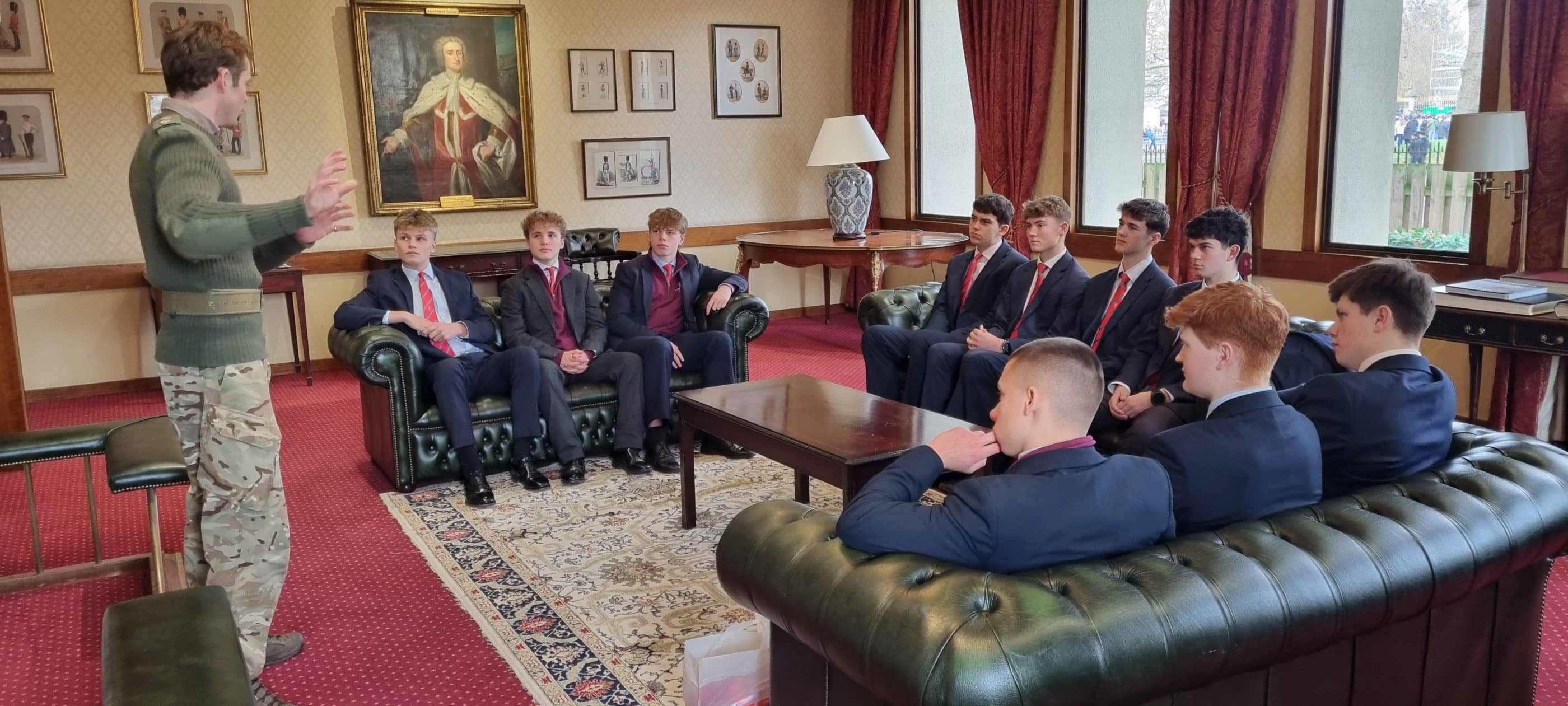 On Monday, the Upper Sixth CCF visited Wellington Barracks, home to the Household Division, and were hosted by OA Lieutenant Max Martin of the Coldstream Guards. The group received a briefing, viewed military weapons systems, and were instructed on Close Quarter Combat (CQB) drills. The day concluded with a Q&A session, offering invaluable career insight for the cadets.