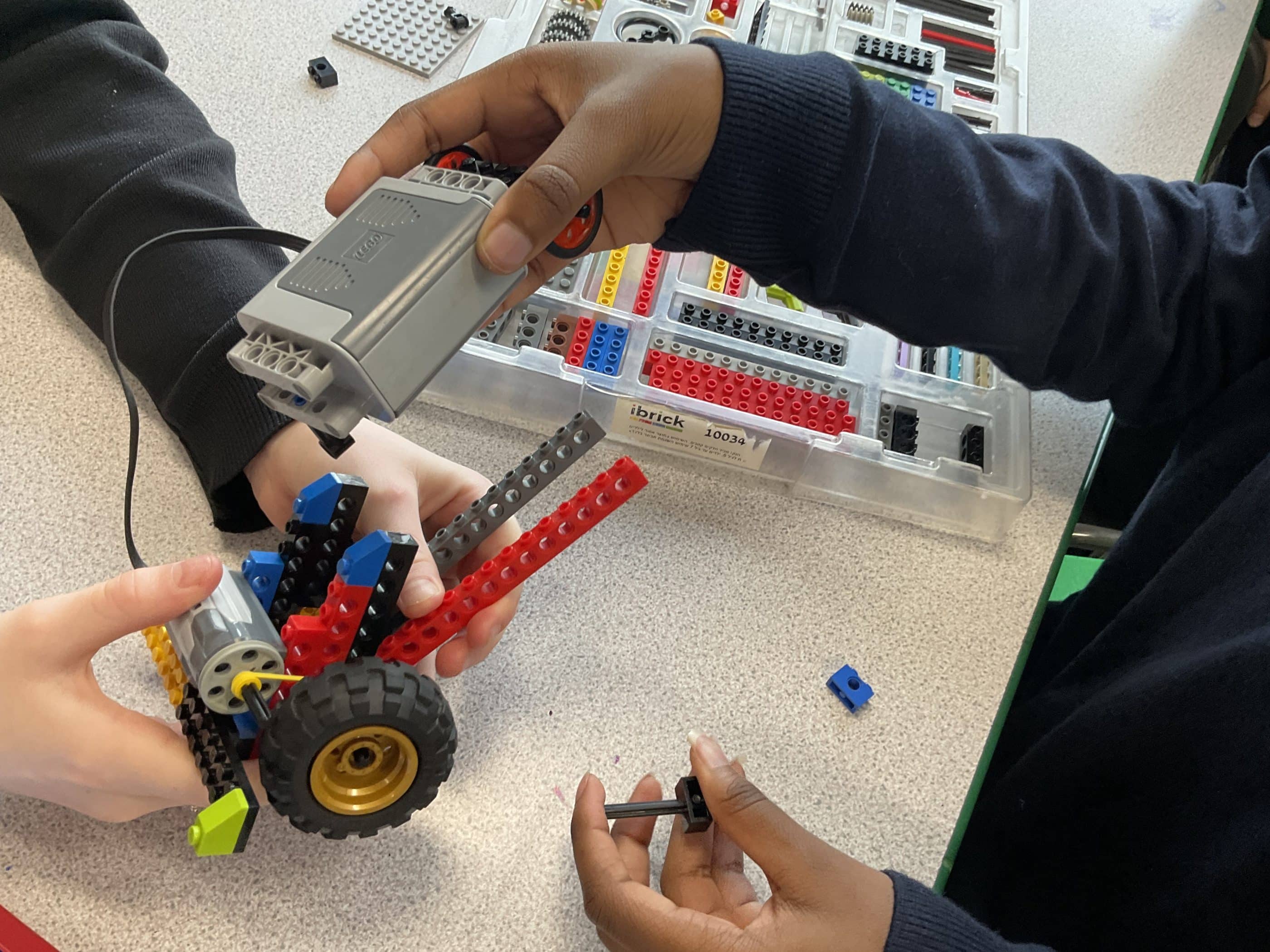 “When I walked into the room there was an instant air of team work. Children working side by side in groups of three with people they had most likely never met before. Yet they worked well together strategically changing and adding parts to their station to make it taller whilst still holding the stability overall. There were some pretty impressive builds that somehow held their shape even though they looked like they would not be able to. It was brilliant to see the enjoyment in the room as well as the logical thinking being done in order to solve any problems that arose whilst they were constructing it. There were two other groups as well who were building lego cars based off a motor elastic band system in order to race them. There were all kinds of wonderful and wacky designs being put together. It was amazing to see the children testing out different types of wheels in order to decide which one would work the best. There was a feeling of tension in the room as the children prepared to race those around them to decide whose car was the best.”