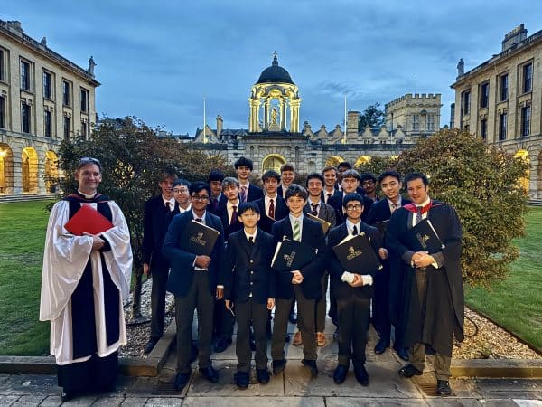 It was a delight to return to the Chapel of the The Queens’ College in Oxford to sing choral evensong. This was the first performance of the year for the Chamber Choir and it was wonderful to perform in such a beautiful and acoustically rewarding setting. It was a busy service, opening with Gibbons’ ‘Almighty and everlasting God’ as the introit. Following responses by Ayleward and a psalm, the choir performed Purcell in G Minor as the canticles. There were lovely solos for Alexander, Tom, and Micky whilst it was a delight to be accompanied on the Chamber organ by Mr Morrin. Our anthem for the evening was Wesley’s ‘Thou wilt keep him in perfect peace’, a gentle and reflective anthem sung with clarity and nuance. Following a brief homily from the chaplain, there was time for a hymn for St Michael’s and All Angels, ‘Angel Voices ever reigning’. We are very grateful to the college and chapel for allowing us to visit and do hope to return in the future.