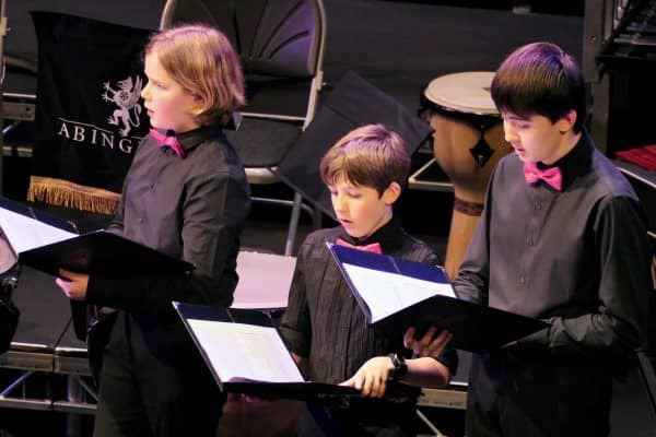 The Christmas Concerts at the end of last week showcased the outstanding range of music-making at Abingdon School. Wednesday’s concert focused on the bands and choirs, opening with the First Year Choir singing ‘Little Jack Frost, Get Lost’ and ‘You’ve Got a Friend in Me’ with great spirit and enthusiasm. The Clarinet Ensemble followed with the ‘Hansel and Gretel Overture’, before the Percussion Ensemble took to the stage with upbeat renditions of The Flintstones theme and ‘Summon the Spirits’, a Taiko drumming–inspired piece.