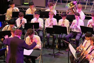 The Chamber Orchestra, led by Mr Stinton, followed with four movements from Peter Warlock’s Capriol Suite before Concert Band, under the baton of Mr Townsend, played a March and Intermezzo from Gordon Jacob’s Original Suite and a festive arrangement of several carols by Leroy Anderson. The dance-like nature of the Capriol Suite was aptly captured throughout the performance and the Concert Band maintained the festive tone of the concert. The first half of the concert culminated with Big Band, directed by Simon Currie on Wednesday and Mr Fox on Friday. The enthusiasm amongst the band was palpable and there were some assured solos from Josef O’Connor, Lachlan Keene, Rudolph Flossmann, and Winston Wong. It was a rousing way to close the first half of the concert.