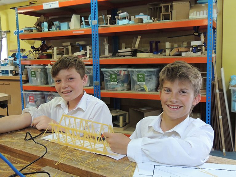 A group of first years enjoyed a design challenge this afternoon in the DT Department. After an initial briefing on structural design, the boys had to create a bridge using only uncooked spaghetti and glue. The bridges were then tested to see which could withstand a load being put on them – not all survived!