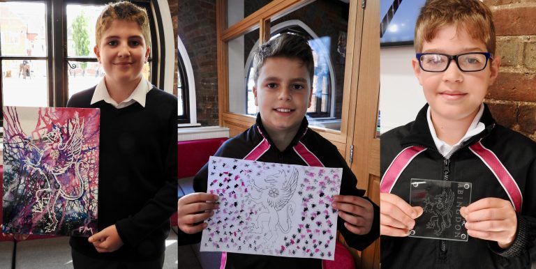 Several of the first years undertook an optional challenge over the summer to create a piece of art work featuring the Abingdon griffen. Entries ranged from a piece of beach art to a lino print, and from an engraved coaster to some rum and raisin fudge. Particular congratulations go to Fred Mellor for his striking canvas which has been declared the winning entry.