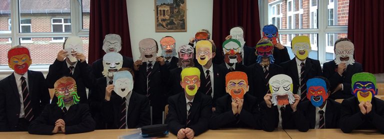The first years have recently been studying Roman theatre in their Latin lessons and have designed a colourful set of masks inspired by characters from a play by Plautus.