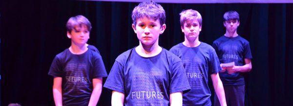 Last week, 28 lower school pupils gave two performances of a play they had largely devised themselves called Futures. The play, staged in the Amey Theatre, with a fabulous painted stage floor designed by the Amey Theatre Technical Crew, posed its adult audiences a question: “Do you remember what it's like to be us? Half-way between an adult and a baby?” In a mix of episodic scenes, original film clips and projections, the large cast of 11 and 12 year-olds attempted to remind those of us for whom childhood is now ever more remote, what it's like to be young.