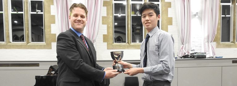Difficult though it was to separate such fine performances, that was precisely the unenviable task that faced our adjudicator. After some very thoughtful and encouraging comments he was able to place the three performances that he felt were the most successful this evening. 1st place and the winner's cup went to pianist Tong Tong for his lovely playing of Chopin, joint second place to cellist, Hugo Payton and violist, Fergal Marsh, and third to oboist, Oliver Glover.