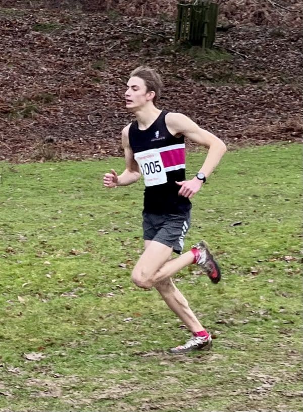 This year’s Knole Run was made all the more challenging due to the heavy rainfall in preceding days and the lack of availability of three of the Senior team that won a silver medal at the English Schools Cup in December. This iconic race is run over a gruelling 9.4km on a brutal course in the beautiful surroundings of Knole Park, Sevenoaks. The team ran doggedly and there were a number of good performances from up and coming squad members and course debutants. Unfortunately, reigning champion Will d’Arcy succumbed to a calf injury and was unable to finish. This left Johnny James to take on the might of the Judd School and the rest of the leading contenders. Johnny ran a tactically superb race and tracked a strong runner from the Coopers’ Company & Coborn School until the final steep hill on which he accelerated into the lead. He won the prestigious race in a time of 32:03 which is outstanding in such wet underfoot conditions.