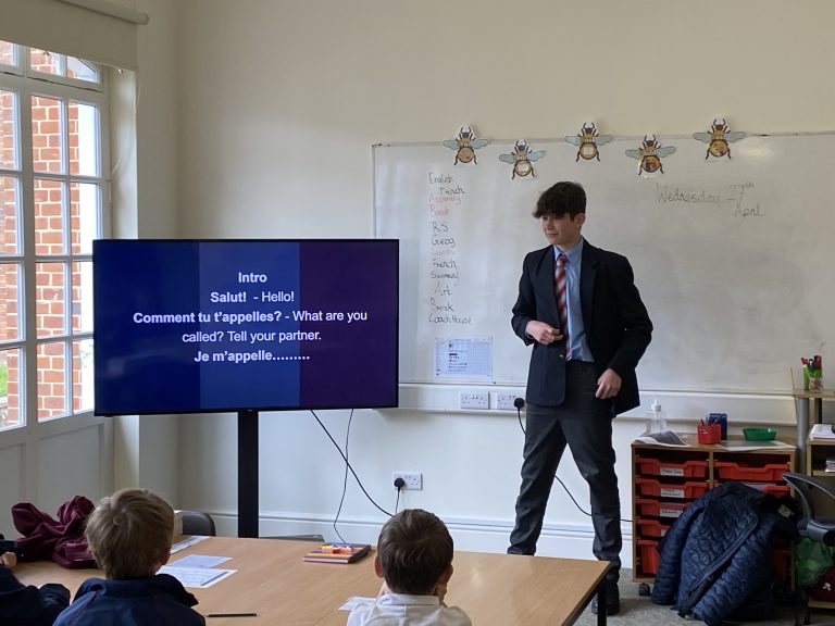 Four pupils from 3rd Year – Gustav Andrian, Jacob Fannon, Luke Glazer and Charlie Haynes – travelled to Brockhurst and Marlston House School in Berkshire during the first week of the summer term, to teach lessons to some Year 3, 4 and 5 pupils there.