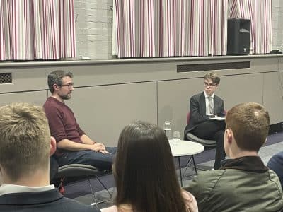 The Abingdon and St Helen’s Joint Literary Society welcomed esteemed poet and critic Ben Wilkinson as guest of honour at our annual dinner. Ben addressed over 50 guests with readings of poetry from his collection Same Difference before being interviewed by Freddy, who is one of many U6 students intending to pursue English at university. The evening was thought-provoking and fun, with a fiendish quiz accompanying superb food and service from our kitchen and hospitality staff.