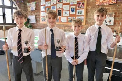 The annual Lower School Pool Doubles Tournament has been taking place over recent weeks with First Year and Second Year pupils pairing up in a series of group matches. The semi-finals and grand final took place in the final week of term. Congratulations to Huw and Sam for narrowly beating Caleb and James to the coveted trophy.
