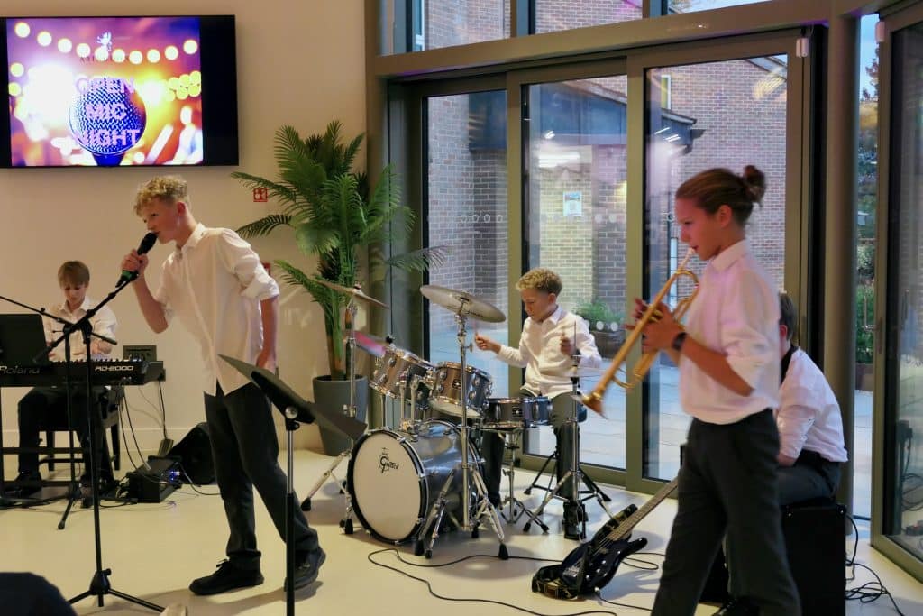 We hosted our first Open Mic Night of the academic year, featuring a variety of bands and solo vocalists from the Lower School through to the Sixth Form. Performers presented an eclectic mix of music, ranging from The Beatles to Oasis, in the relaxed and welcoming setting of the Pavilion. The event was an exciting occasion, showcasing a number of impressive debut performances. Audiences can look forward to hearing more of our popular music offering at the Rock Concert in the Lent Term.