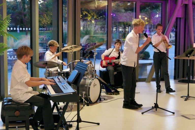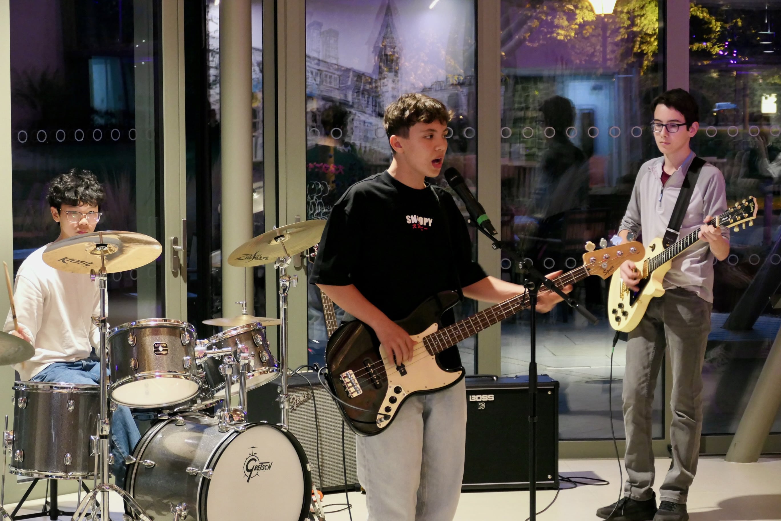 We hosted our first Open Mic Night of the academic year, featuring a variety of bands and solo vocalists from the Lower School through to the Sixth Form. Performers presented an eclectic mix of music, ranging from The Beatles to Oasis, in the relaxed and welcoming setting of the Pavilion. The event was an exciting occasion, showcasing a number of impressive debut performances. Audiences can look forward to hearing more of our popular music offering at the Rock Concert in the Lent Term.