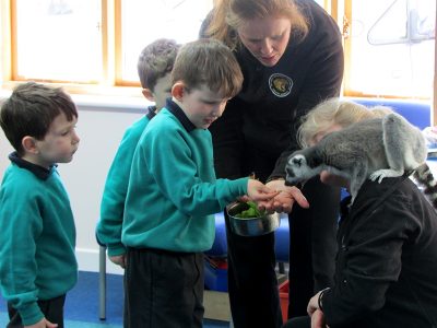 During Book Week Pre-prep and Middle Section were treated to a visit from some truly amazing characters! A squirrel monkey, ring-tailed lemur and two penguins descended on Abingdon Prep and created a real wow with the boys. This was an incredible opportunity for the children to literally get first hand experience of these beautiful creatures. Amid gasps of delight we were able to feel monkeys jumping onto our shoulders, relish in the colour, beauty and texture of the decorative tail of the lemur and feed fresh fish to the penguins. The children had the opportunity to learn about these animals from warm, entertaining and highly experienced keepers, who shared their incredible personal knowledge of each creature. We learnt about habitats, diet, lifestyle, character, behaviour and much more. Each of the animals is famous in its own right, as they belong to the Heythrop Zoological Gardens (HZG) who rear, build relationships with, and train the animals to take part in films and television productions. This means that they are tame and used to human contact, making for a very entertaining and highly educational experience for children and adults alike! This was a truly amazing experience, which the children are now using as a stimulus for their writing and one which we know, they will never forget.