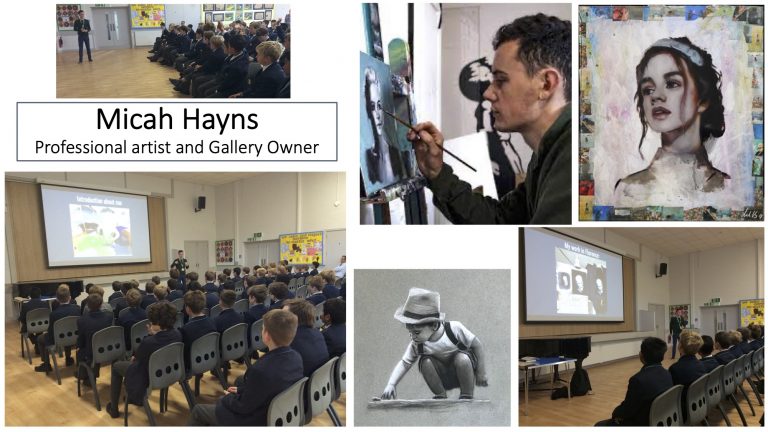 Last week Micah Hayns, former Abingdon School student, professional artist and gallery owner visited the senior section assembly. Micah generously gave his time to answer questions, present examples of his artwork and spoke of his journey from studying fine art in Florence, working to commissions and running a gallery. The senior section greatly appreciated the opportunity to discuss the many possibilities of pursuing a future in the creative industries.