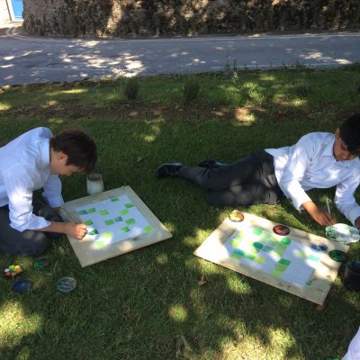 Year 6S enjoyed some painting ‘en plein air’ this week. Researching the colour green for the botanical art unit, colour mixing and observing the nature around them. They will be working on top of their swatch backgrounds to create detailed studies of cacti.