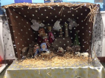 Finally the Year 6 Textile group has used recycled wood to make the most beautiful Christmas night scene which has become the centre piece of the Christmas display. That alongside the school crib has ensured the real meaning of Christmas is not lost.