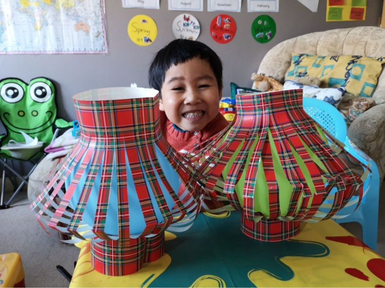 Two of our boys in Reception talked to us about what Chinese New Year means to them and their families. We found out how to make lanterns and learnt some very tricky Chinese phrases. The beautiful decoration was very carefully cut out and shows the Chinese character 春 which means ‘spring’. This young man was so proud of his achievement that he independently wrote it into his Happy Days Diary!