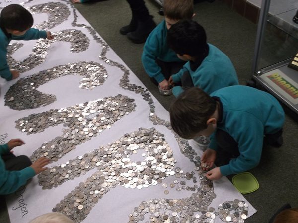 We decided to cover the letters of the name Oscar. This year there was an added incentive of an inter-house competition – house points being awarded for the most coins laid and the highest amount of money raised. The boys excelled themselves and the letters were soon piled high with coins. The result of the competition will have to wait until all the coins are counted. (I am hoping that by next year the 5p coin will be out of circulation!)