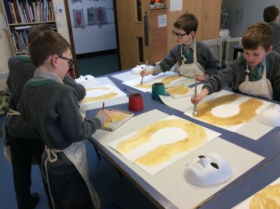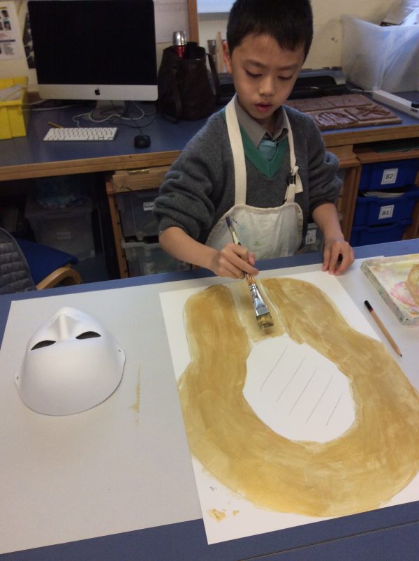 Year 3 has been learning about Egyptians in art. As preparation for their collage experiments they diligently painted their death masks in a very rich gold using acrylic paints. The objective was to create a smooth layer and soft consistency of paint. We are looking forward to personalising them with gems, and patterns using mixed media next week. Well done Year 3.