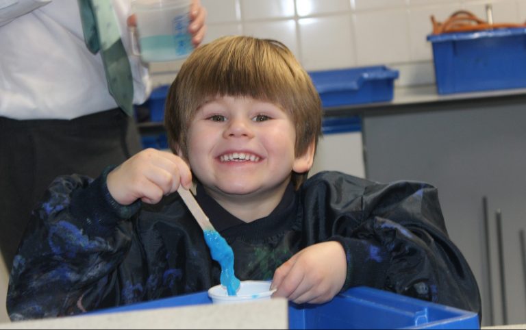 Science week at Abingdon Prep got underway with the boys in Reception enjoying making slime with Year 8. Glitter and blue food colouring were added to their bouncy slime accompanied by many happy smiles along the way.