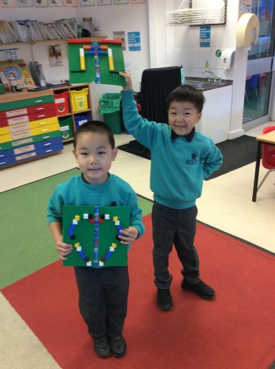 Year 1 has been studying symmetry, creating symmetrical pictures with Lego boards.