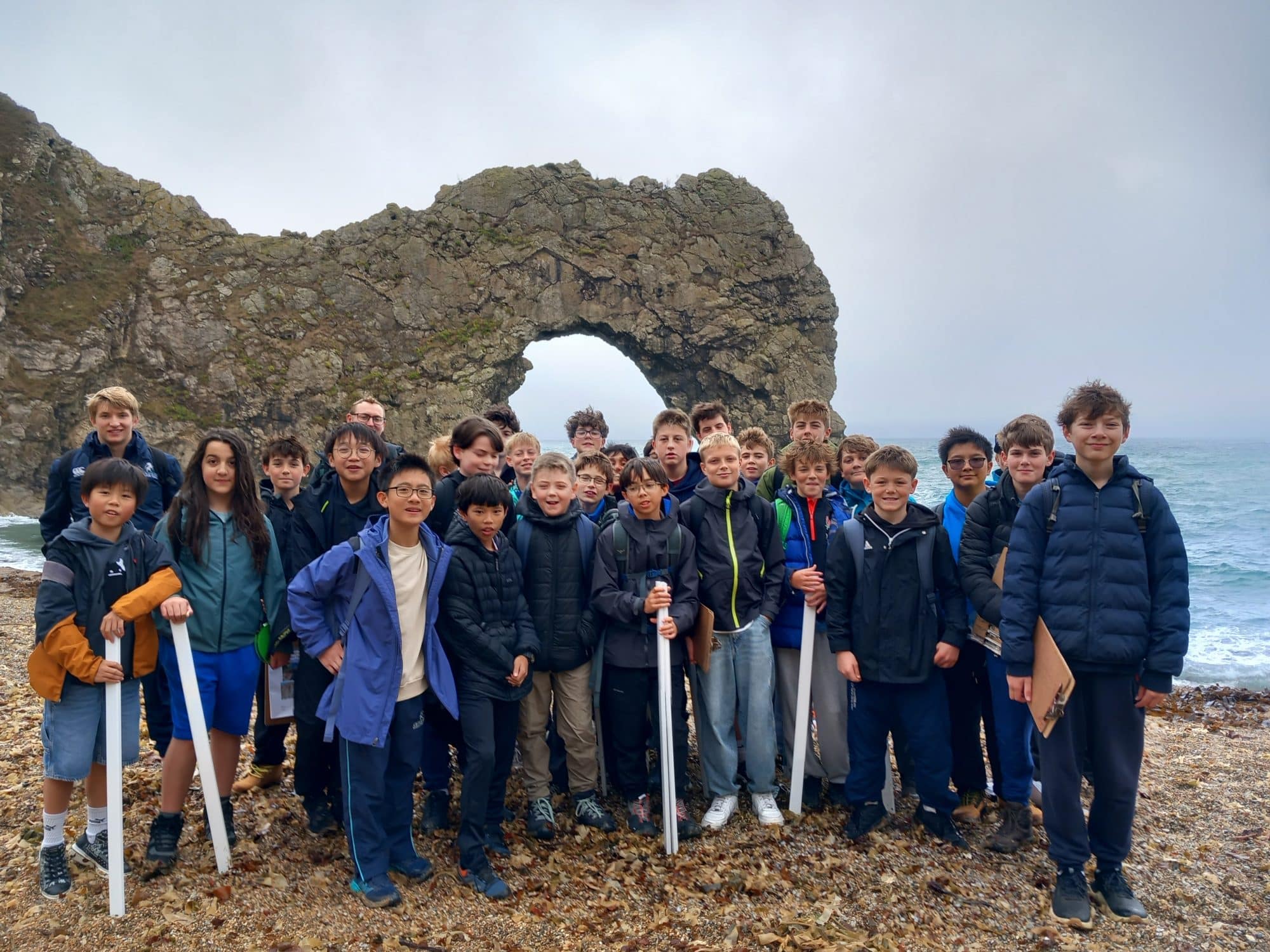 Year 8 enjoyed a blustery visit to the Jurassic Coast as part of their geography topic on coasts. They practised their fieldwork skills in the morning, collecting data on sediment size and beach angles in Durdle Cove. After a brief period sheltering in the visitor centre when the rain arrived, we then went into Lulworth Cove, which is still blocked by last year’s landslide, and discussed the exciting coastal features and rock folding at the Lulworth Crumple.