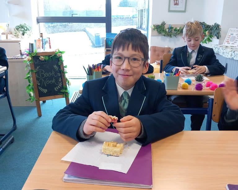 Year 5 celebrated their return to school and French lessons by learning about the Fête des Rois by searching for the hidden ‘fève’ inside a cake.