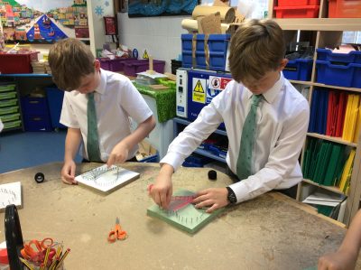 Boys enjoyed returning to the CDT room. We have been using tools on various projects including Year 5 making a start on their ever popular maze games, Year 6 creating hammer and string hearts, Year 7 made jitterbugs to take into a class jitter-off and Year 8 created some impressive owls. Year 3 had their first lesson in the CDT room and made a start on their wooden lattice pencil pots.