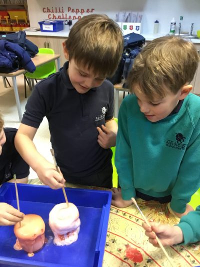 28 January 2020 Year 2 conducted a glitter explosion experiment last week, creating a chemical reaction by mixing sodium bicarbonate with vinegar. We added food colouring and glitter to create the explosion!