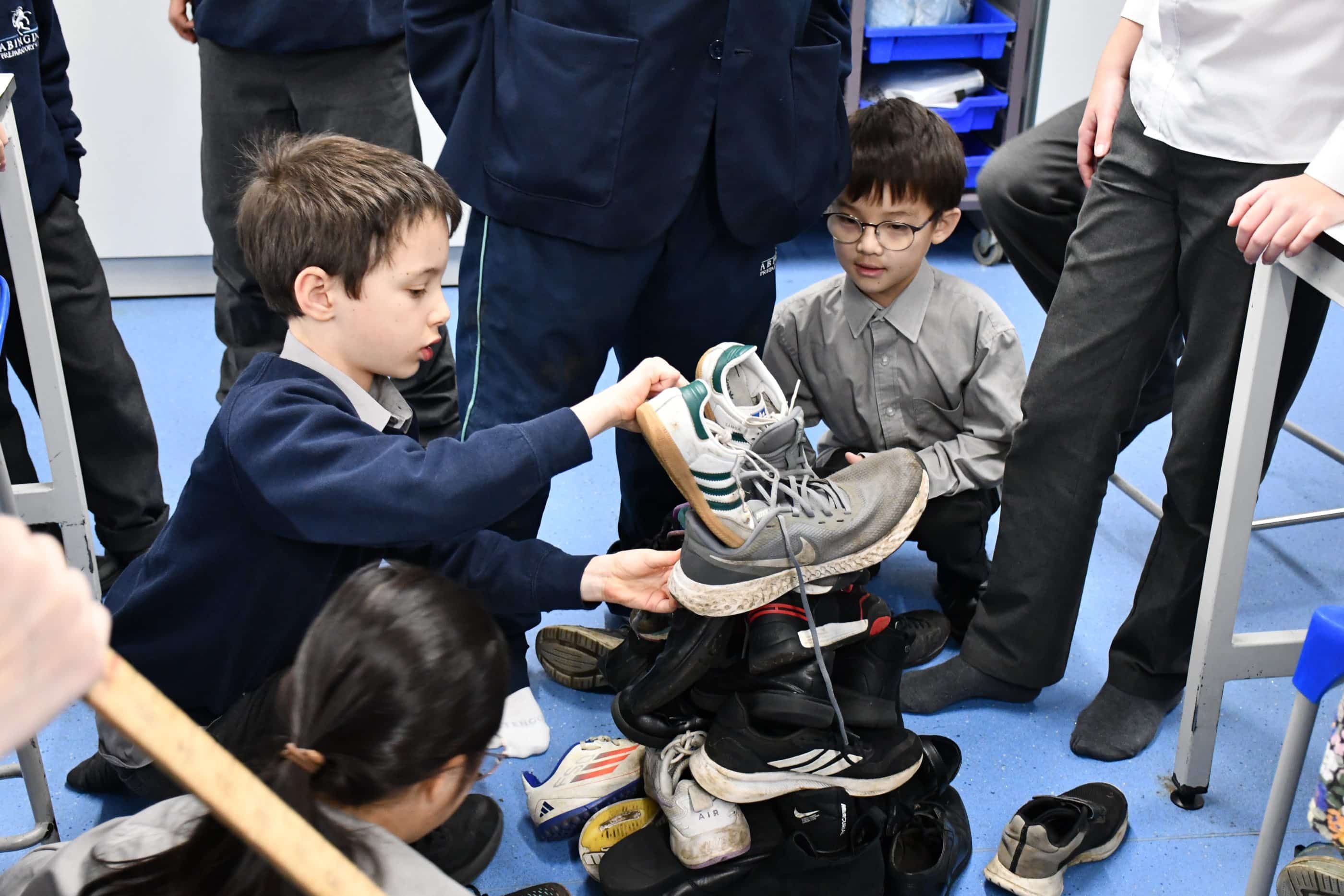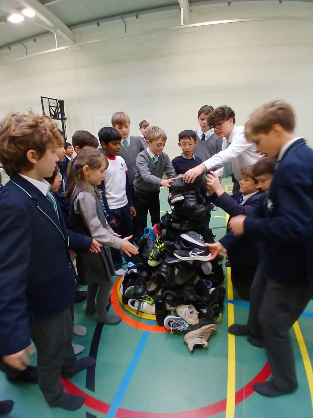 Pupils gathered this morning for the annual much loved shoe stacking competition. Given their exposure to these competitions in the past, many pupils have acquired quite sophisticated construction skills that meant that some huge towers were created from using only their own shoes. The pupils created some very impressive buildings, several in excess of 1 metre tall! All in all it was great fun and thoroughly enjoyed by all.