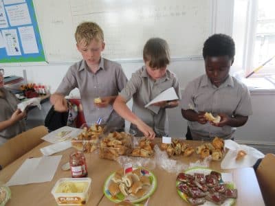 International week at Abingdon Prep included an opportunity for the children to taste breads from different countries. These included Scwarzbrot (German rye bread); croissants, pain au chocolate and brioche; and Pitta with hummus. The pitta bread was a firm favourite for many children!