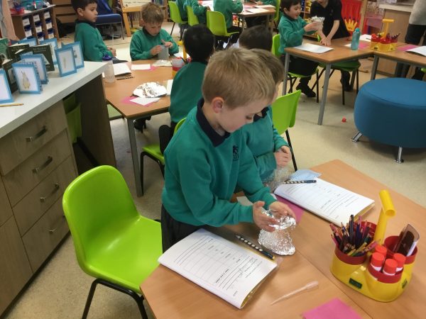 Year 2 has been investigating what the best material is to keep Peter Rabbit dry when it is raining. They experimented with lots of different materials to see which were absorbent and which were waterproof. The boys used scientific equipment including beakers and pipettes during their experiment.
