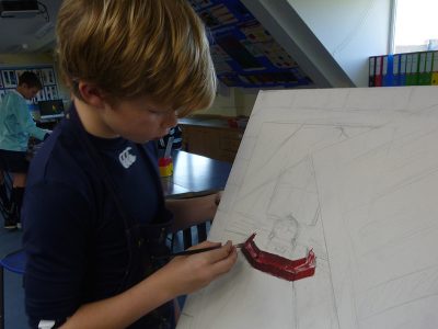 5 October 2016 The boys have been working on their own art projects in our lunch time art club. Their projects range from planning a large acrylic painting that involves careful perspective to etching out a design ready to be printed.
