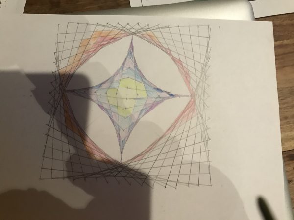 Boys in Years 3 to 8 have used their mathematical knowledge to produce some incredible technical drawings in CDT lessons. As if by magic… straight lines can be used to make the most perfect curves! Have a look at some of our unique results, varying from a simple cross to superimposed colours and multi patterns. Some people even had a go at drawing stick figures with designer curves!