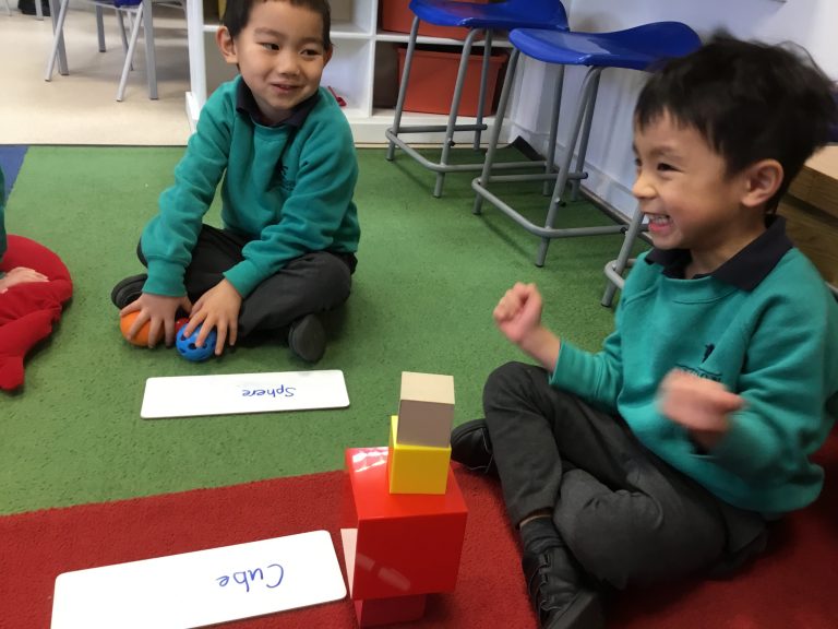 Reception has been combining the skills that they learnt last week to sort a selection of 3d shapes. Some children wrote their own labels independently, whilst others collaborated to build intricate cities from the shapes they could instantly sort.