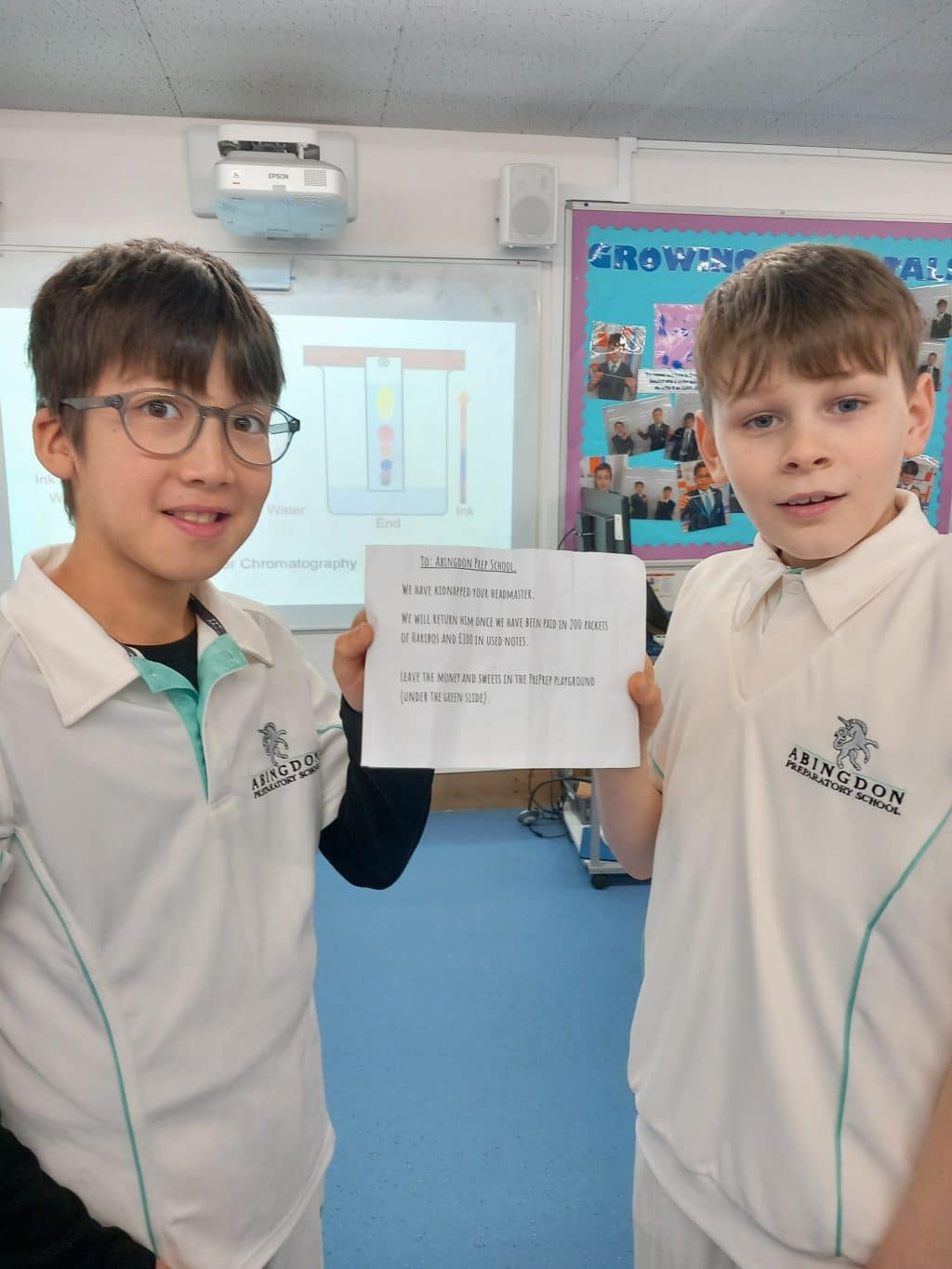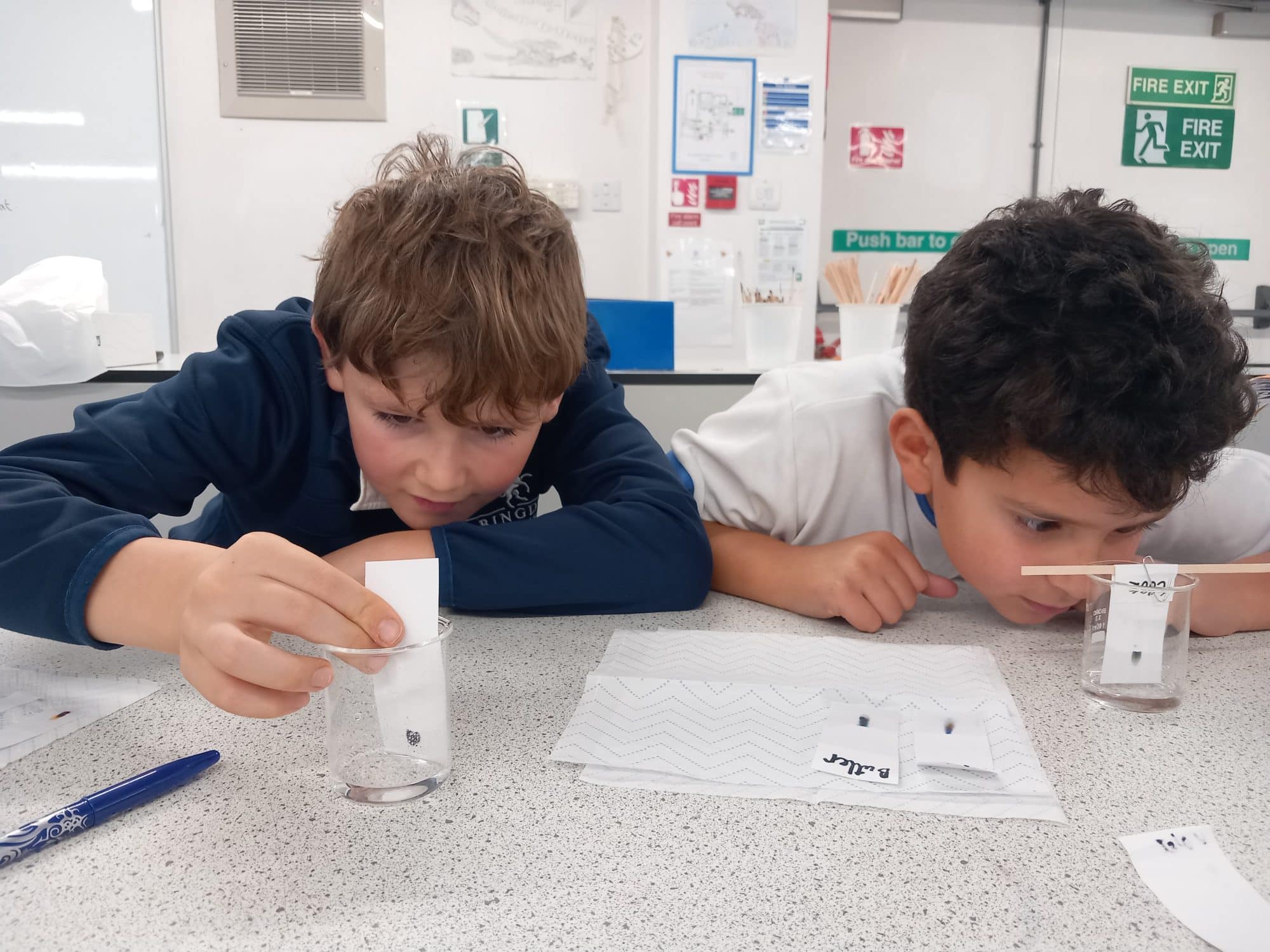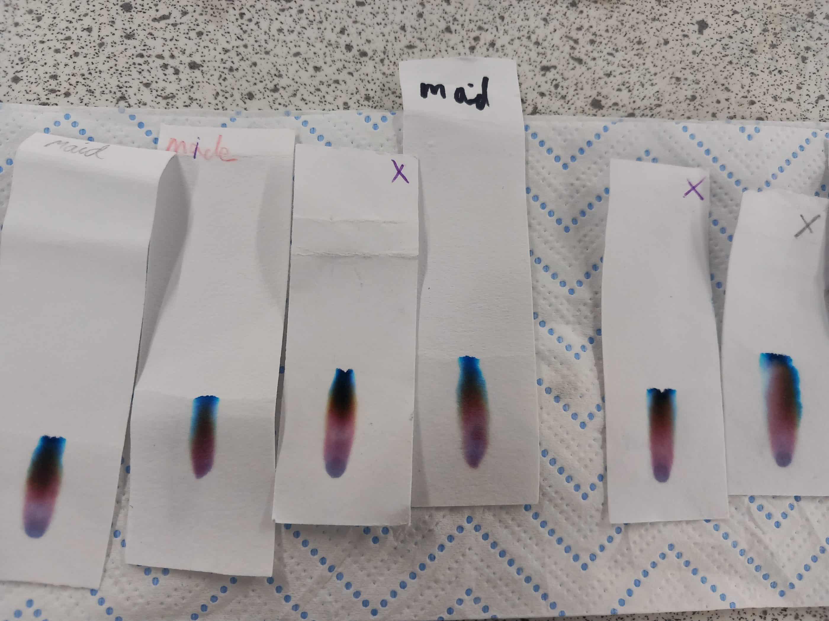 Year 6 have been using paper chromatography separation this week to solve a mystery — who kidnapped Craig in his final week? We tested the ink from the note (Sample X) and compared it with black pens belonging to all the suspects found at the crime scene… and the results showed it was the maid.