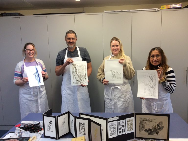 On Saturday a collection of creative parents gathered in the art room for the first time, to try their hand at Dry Point Etching. After taking time to file the edges of their printing plates, they selected images of wrens, a newt, owls, hares and kingfishers. Learning a little of the history of printmaking and etching, they embarked on using a ‘burr’ to incise their imagery and later, ink up to create a range of fabulous prints using the press. The standard was very high, and everyone enjoyed the time to and space to be creative whilst learning a new skill. Another workshop is already being discussed, we hope you can join us next time!