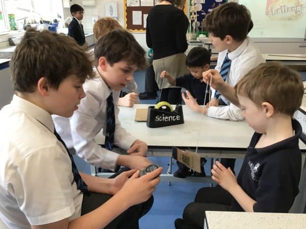 For their Science Week session, Reception were joined by Year 8 pupils who helped them with a pendulums experiment to vary their pendulum weights to time ten swings in a set time. Reception loved coming to the exciting senior science lab, using the stopwatches and making their pendulums. Much fun was had by both classes.