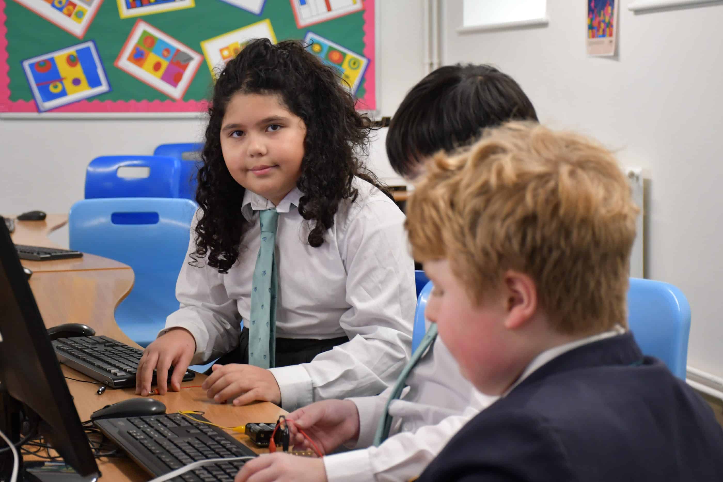 Year 5 pupils have been using Crumble controllers for physical computing projects, programming buzzers, lights and switches to create interactive systems and explore how computers control real-world devices.