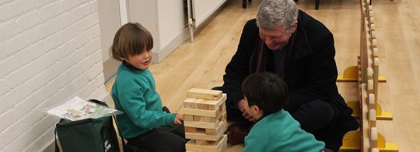 A cross generation event of fun and games took place last Friday. Not track and field, nor football, rugby or hockey; the hall was filled with a hub-bub of all the boys from Pre-Prep and their grandparents spending time together playing with toys and games from a previous era. There was Jenga, pick up sticks, knuckles, bagatelle, spinning tops, skittles, jigsaws, dominoes, snakes and ladders…and much more. There wasn’t a screen in sight!