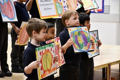 Pre-Prep celebrated the season of Autumn with a pumpkin festival. There was an opportunity for families to work together to create a pumpkin for the competition. With songs and pumpkin artwork inspired by Yayoi Kusama, an art exhibition by young artists in Year 2 and a huge pile of generous donations for the Oxford Food Hub, it was certainly a fabulous end to the first half of term.