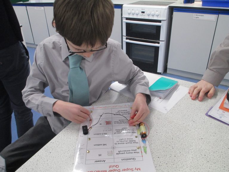 Year 4 boys investigated electrical conductors and insulators and their uses in everyday life. They constructed simple series circuits and learned the electrical symbols for cells, wires, bulbs, switches, motors and buzzers, relating these components to everyday life. They investigated the factors that can alter the brightness of a bulb and the uses of switches. They completed the topic by designing simple electrical quiz boards based on their interests.