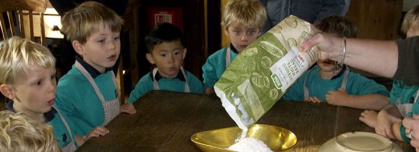 They learnt how to bake bread in a hot bread oven, grind corn into flour, plant corn seeds in little pots they had made from newspaper and re-tell the story of the Little Red Hen.