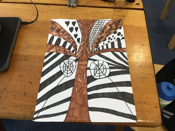 25 February 2021 Learning to draw in relief is a skill many designers use. Katie taught us that having fun with pattern and focusing on the background, not the main item in our pictures, can make the ‘tree’ pop out of the page.
