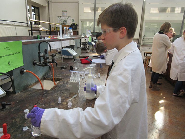 Four members of 8R took part in the regional Salter Festival of Chemistry today held at Oxford University Department of Chemistry. 16 schools took part in the day which consisted of two taxing chemical challenges. The morning challenge was a forensic practical set by the Salter company which involved chromatography and identification of metal salts to find the murderer. The boys worked in pairs and pooled results. The tricky afternoon team challenge was set by the University and involved making a circuit including a magnesium strip which had to be eaten through by acid in a set time. This needed methodical preparation for the final timed run. The boys were observed and judged throughout the practicals too for good skills and health & safety, not just the end result. Afterwards we were treated to a chemistry show given by our host Dr Stewart, during which he made ice-cream using liquid nitrogen which all the pupils got to taste. Our quartet took second place in the University Challenge – well done to our team!