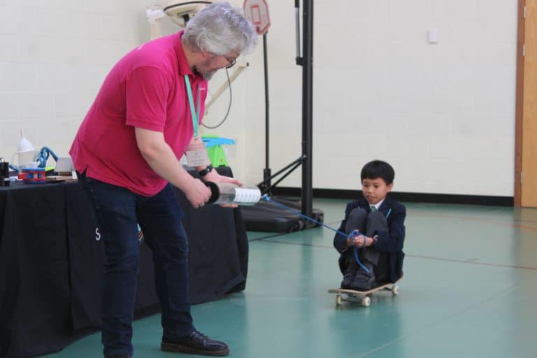 Year 6 saw the Forces Show, which had plenty of opportunity for audience participation as Ian demonstrated Newton’s laws and many different types of forces, including the aerodynamics of falling objects, compressive bridge building and the shape of eggshells.