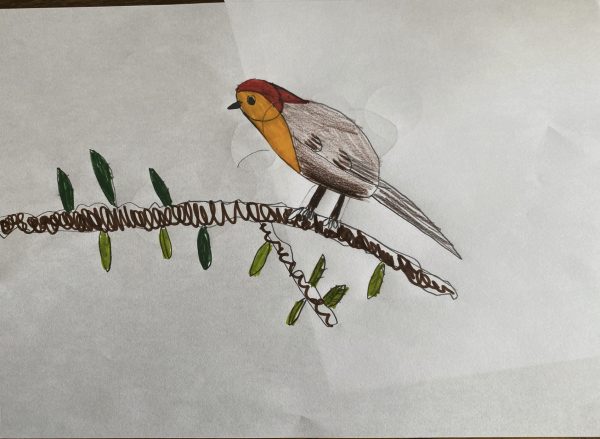 Our preparatory drawings by Years 3, 5 and 6 of robins, kingfishers and chickens were wonderful experiments ahead of making our bird into 3D sculptures next week. We even had the delight of a real chicken join us for his first art lesson, he was very well behaved too!