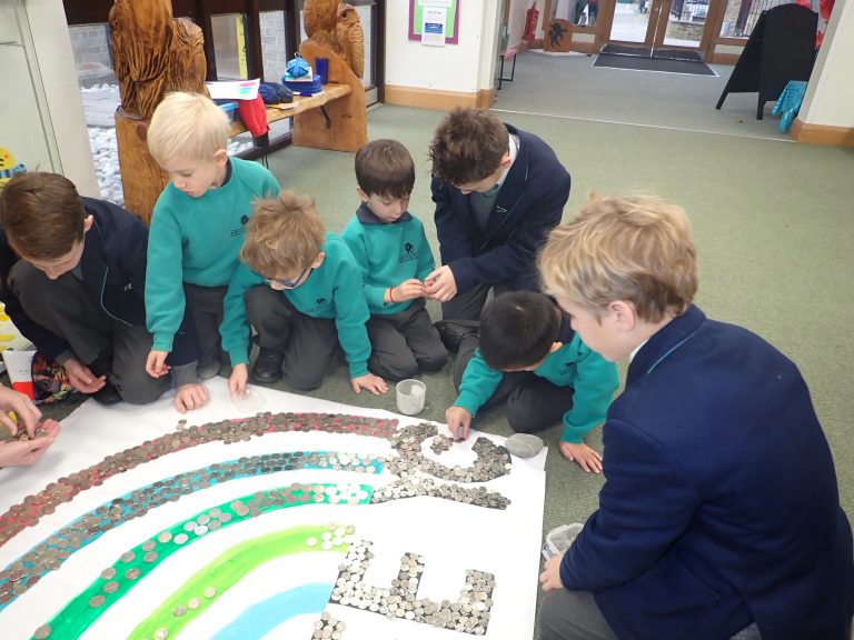 The whole school took part in our annual silver coin charity event. Each boy was asked to bring in a handful of silver coins. This year we are raising funds for the local charity ‘Be Free YC’ which helps and supports young carers in Oxfordshire. The boys laid their coins on the charities logo, with the older boys helping the younger ones to put the correct coin on the correct colour of the rainbow! It was a fantastic event, raising nearly £1000.